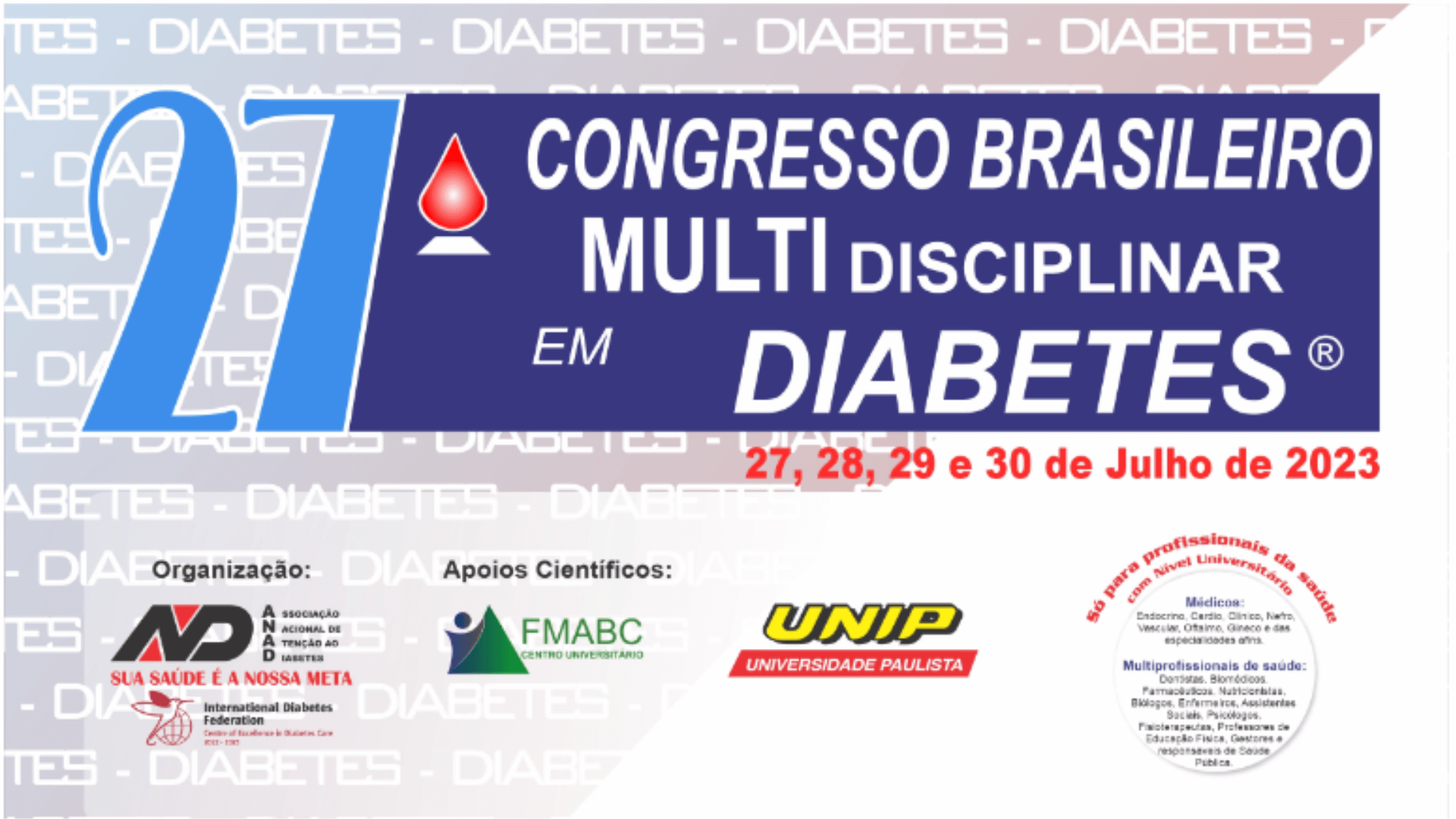 Nos dias 27 a 30 de julho de 2023, irá acontecer o 27º Congresso Brasileiro Multidisciplinar em Diabetes, da Associação Nacional de Atenção ao Diabetes (ANAD).