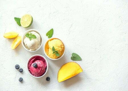 O sorbet, é um sorvete à base de água e frutas, contendo menos gordura e uma textura semelhante à uma raspadinha. Só de pensar nessas delícias, dá uma água na boca, não é?